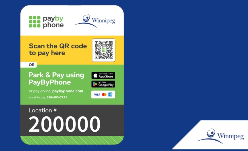 위니펙시는 주차 미터기가 철거됨에 따라, 시민들에게 PayByPhone을 다운로드 할 것을 권장하고 있다. 주차 요금은 온라인 또는 전화 (1-888-680-7275)로도 정산할 수 있다.